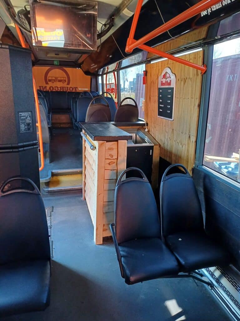 Met plek voor 85 feestbeesten is dit geen partybus – dit is een club op wielen, een complete rave op de snelweg, een feest dat zichzelf vervoert.